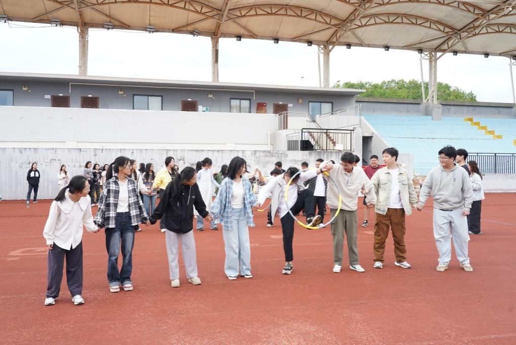开幕式上,丘兆逸副院长强调,素质拓展活动有利于增进同学间的友谊,培养团队合作的力量。随后依次进行 “齐心协力运球” “穿越呼啦圈” “定点投绣球” “集体跳大绳” “蛟龙出海”五个项目。每个项目都考验参赛队伍的团队协作能力和默契程度。在“齐心协力运球”项目中,队员们用身体夹住气球,小心翼翼地向前运输,现场观众为他们的精彩表现欢呼鼓掌。而在“穿越呼啦圈”项目中,队员们手拉手,通过身体扭动将呼啦圈从排头传递到排尾,展现了极高的团队协作能力。随后的“定点投绣球”和“集体跳大绳”项目同样精彩纷呈,参赛队员们配合默契,努力争取最佳成绩。最后的“蛟龙出海”项目中,队员们肩并肩,用绑腿带将脚踝绑在一起,齐步向前,展现了团队的力量和协调性。